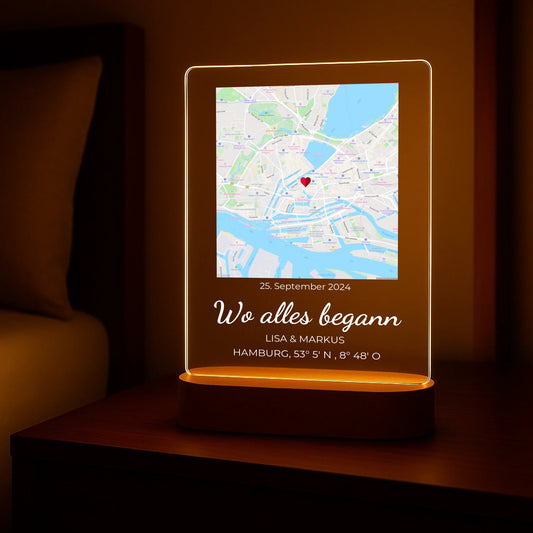 Plaque de rue vintage - Lumière de nuit personnalisée (y compris base en bois)