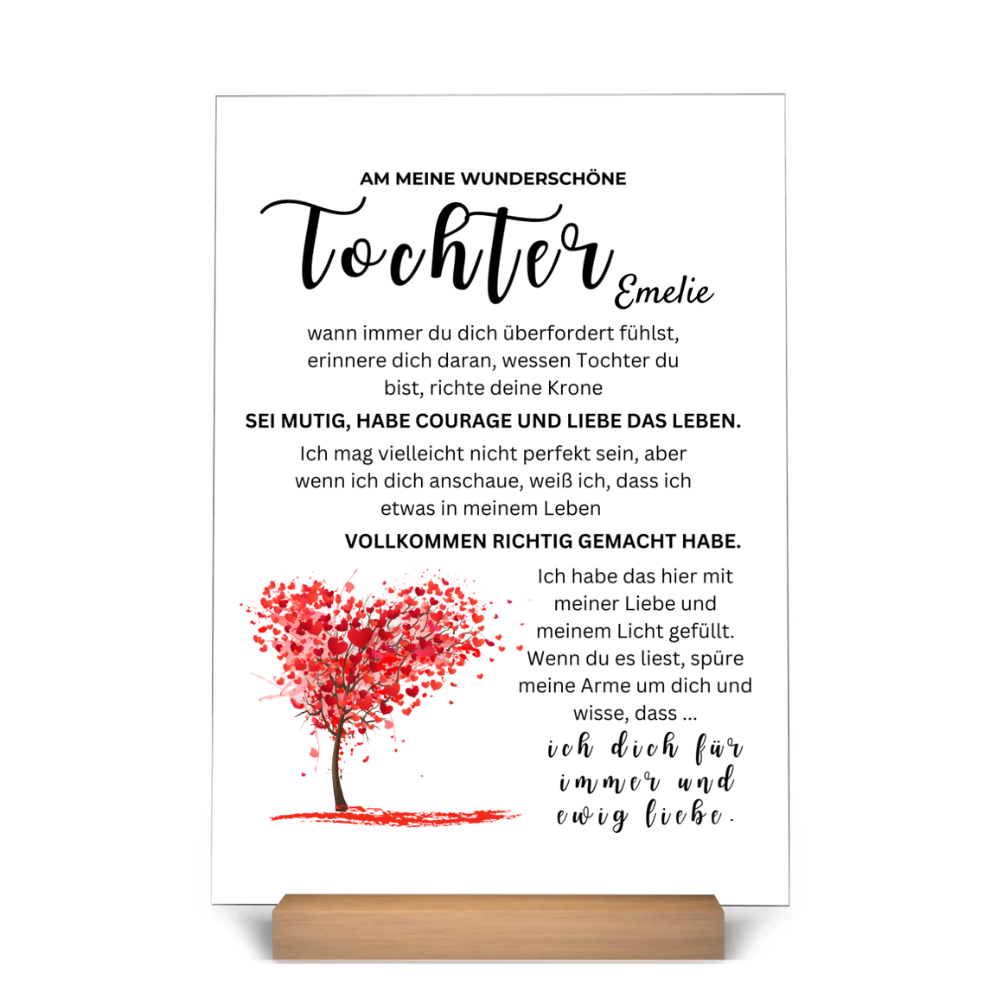 Die "Familienglas" Acryltafel wird sorgfältig aus hochwertigem Acryl-Plexiglas gefertigt, um Langlebigkeit und Klarheit zu gewährleisten.