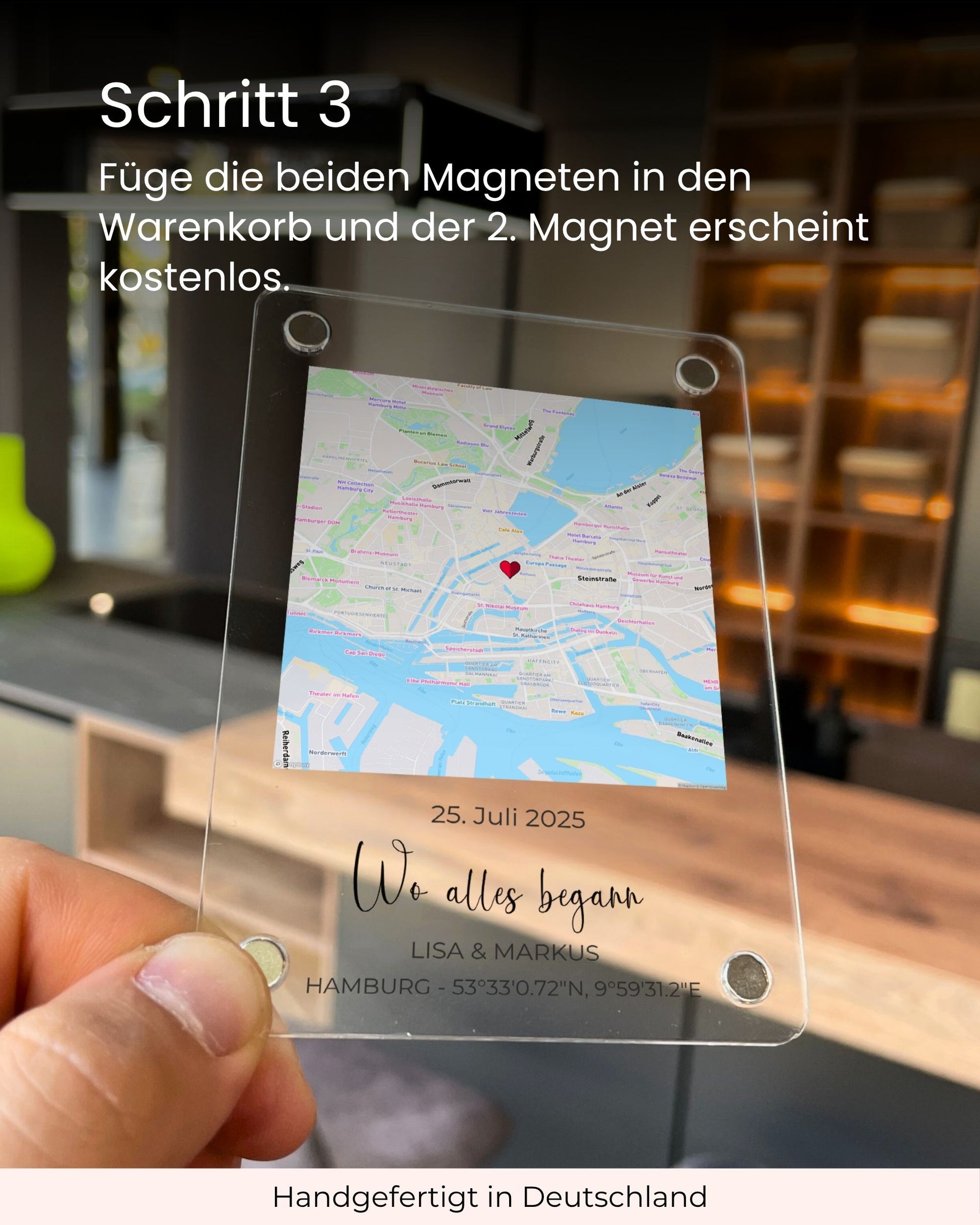 Jeder Magnet wird mit größter Sorgfalt und hochwertigen Materialien gefertigt, damit dein Moment stilvoll festgehalten wird.