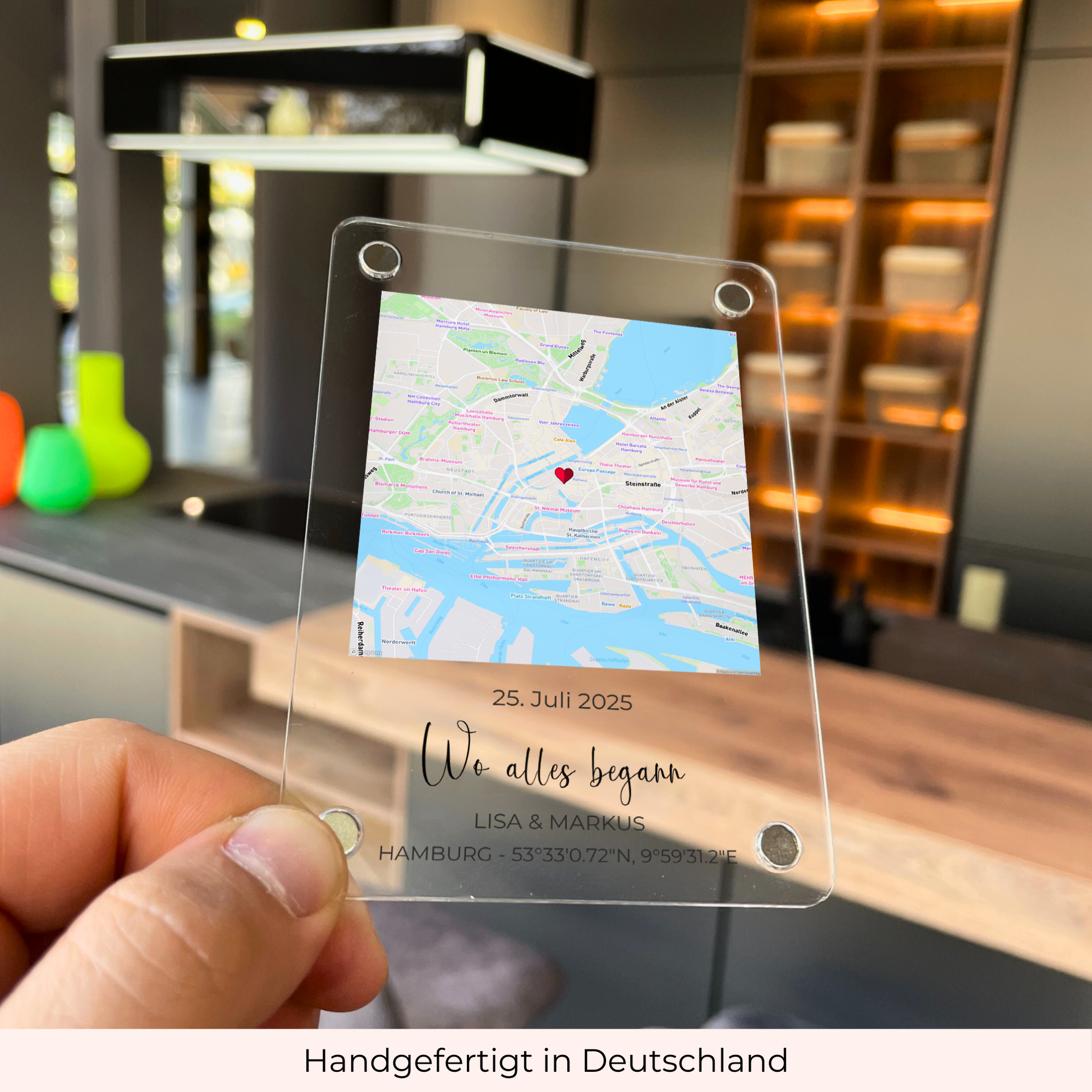 C’est pourquoi notre plaque en acrylique existe aussi avec un élégant support en bois – pour mettre ton lieu spécial en valeur, où que tu sois.