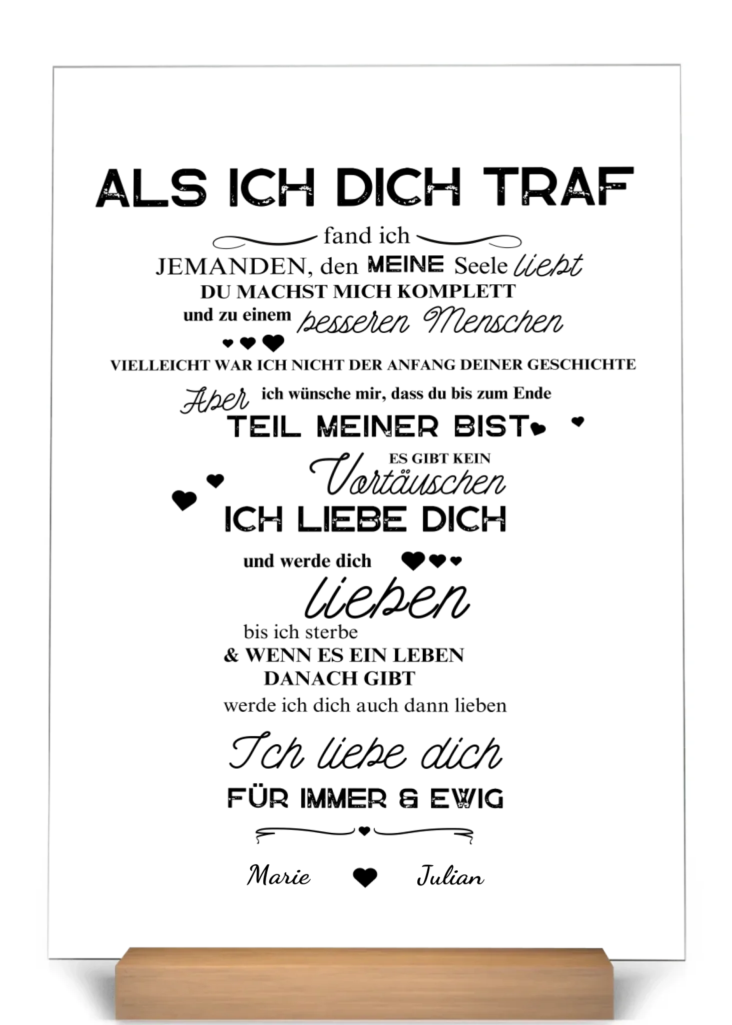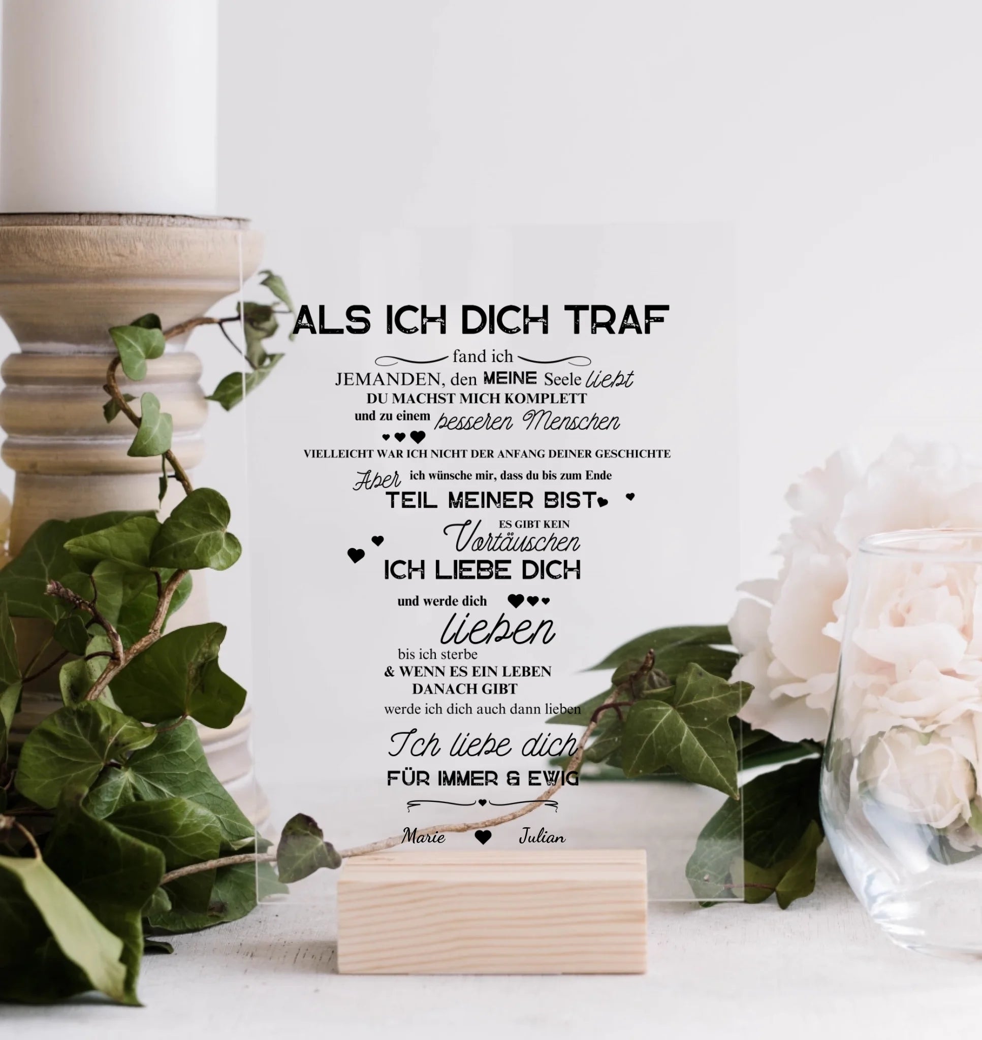 La plaque acrylique « When I Met You » est soigneusement fabriquée à partir de plexiglas acrylique de haute qualité pour garantir durabilité et clarté.