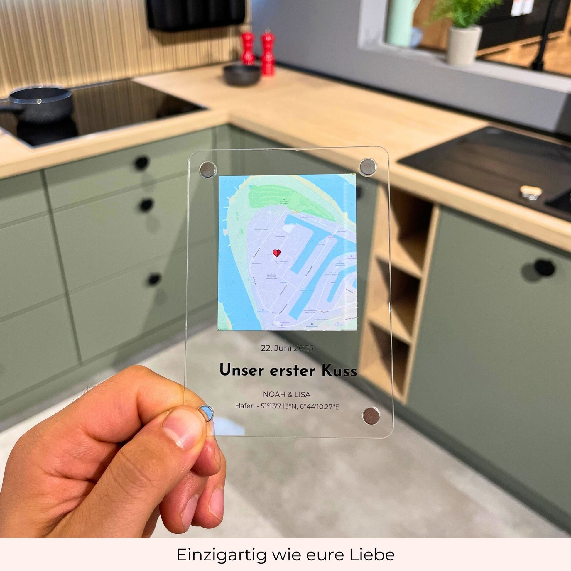 C’est pourquoi notre plaque en acrylique existe aussi avec un élégant support en bois – pour mettre ton lieu spécial en valeur, où que tu sois.